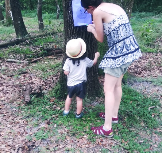 Our Fall Session #1 topics was Bugs, Birds, and Bats. To start, we focused on the connections of flower colors to common pollinators. We had a lot of fun collecting things to make a bug house. We talked about where insects live, added examples to our journals, reviewed insects with clues, and tallied up dragonflies as they dashed over the water. We made-up movements of insects and acted out our favorite insects movements together. For our next focus, we spotted a woodpecker, blue jay, dove, and cardinal. We turned into birds gathering up materials to build our nest. Like a bird we made our nests and then did some silly movements on the trails. We graphed our favorite "spark bird" (the bird that made us birders) as well as making a simple bird craft to take along our nature walk. We also learned about how woodpeckers make their nests in cavities in the trees. Our next study was bats. We practiced hanging from branches and balancing on logs with our friends. We turned into hungry bats filling our bellies with 100 mosquitoes. Besides learning about what they love to eat we learned how important they are at protecting, spreading seeds, and pollinating many crops. We added to our journals a drawing of different sized bat boxes by rolling a die. The number rolled was how many chambers your bat box would have. We learned about what bats eat: insects, fruit, nectar and where bats live: caves, trees, and bat houses. In our journals we drew our own Bat House. On Tuesdays our leader teaches us ASL, American Sign Language. We learned bird body parts, our primary colors, the four seasons, our numbers, our pets, and our emotions. We used mirrors to play with the colors of a rainbow connecting it to the light of the Sun. We learned where light came from and how light reflects colors! On Wednesdays & Fridays we focused on journaling and using nature's manipulatives when we counted by doubles with stones and tree cookies and our mirrors. On Thursdays we got inspirations from our explorations of shapes, colors, and textures along with a Nature Walk to create works of art!